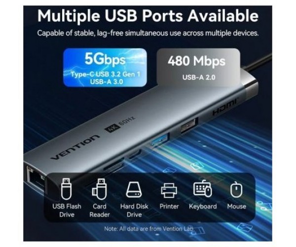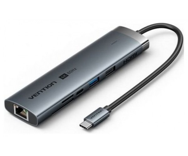 Docking USB Tipo-C Vention TGUHB/ RJ45/ 2xUSB/ 1xUSB Tipo-C/ 1xHDMI/ 1xUSB Tipo-C PD/ 1xLector de Tarjetas/ Gris