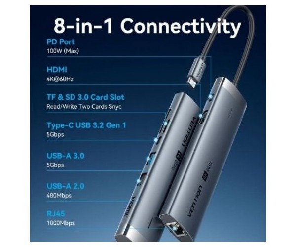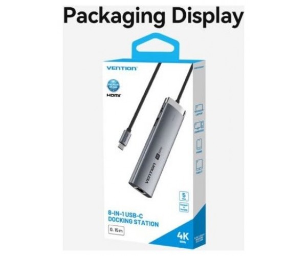 Vention Docking Station USB-C a HDMI/ USB-C 3.2Gen1/ USB3.0/ USB2.0/ RJ45/ SD/ TF/ PD TGUHB 0.15m Aluminio