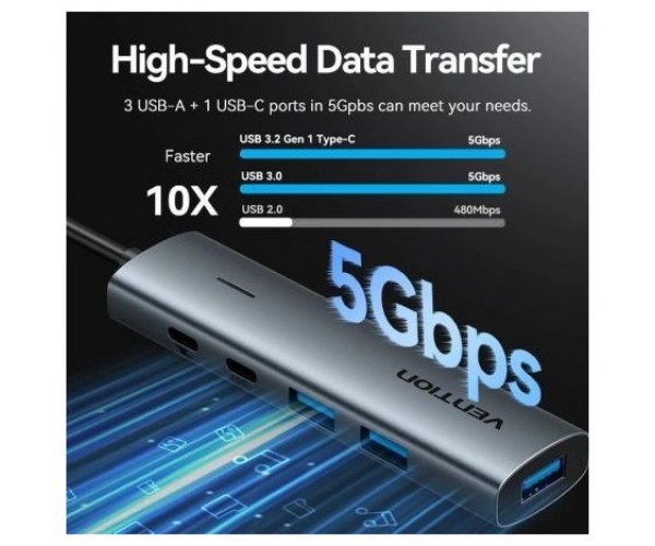 Vention HUB USB-A 3.2 a USB-C 3.2Gen1/ USB3.0x3USB-C 0.15m TGXHB Aluminio