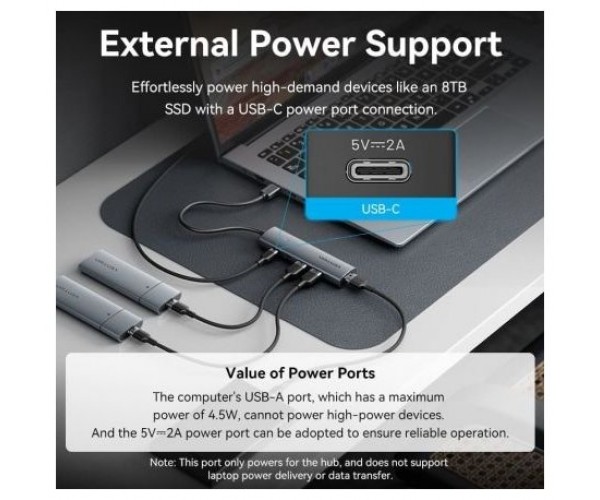 Hub USB 3.0 Vention TGXHB/ 1xUSB Tipo-C/ 3xUSB/ 1xUSB Tipo-C PD/ Gris