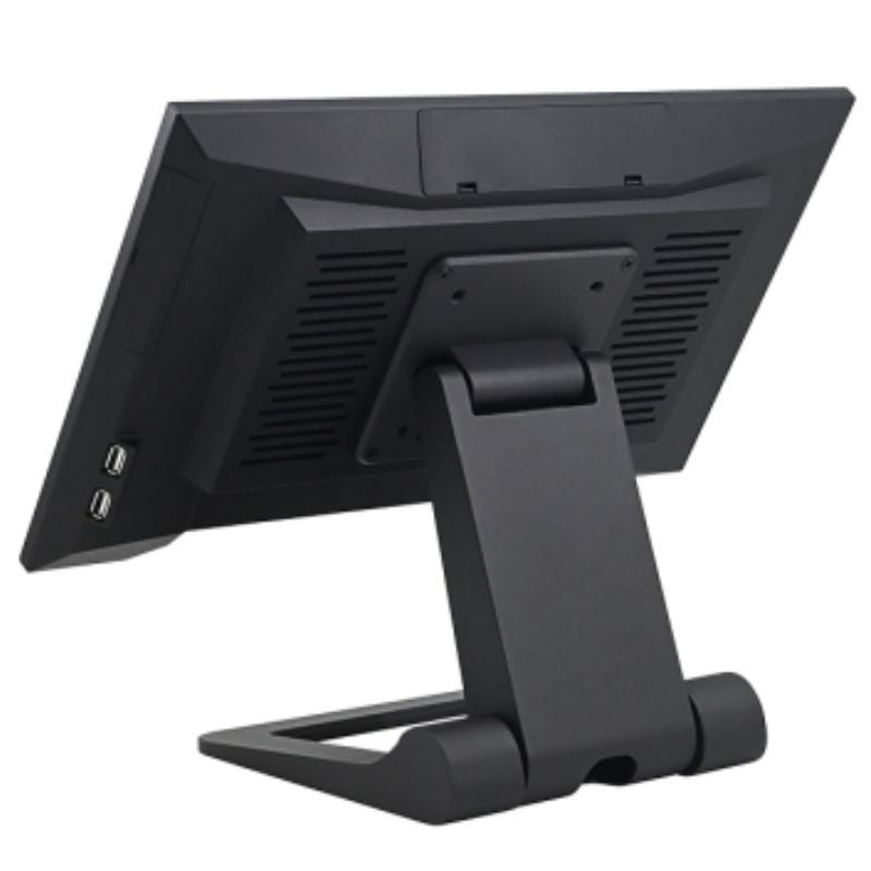 Monitor TPV de 15,6 pulgadas, pantalla capacitiva plana, procesador Intel Core i5-7300U de doble núcleo, memoria DDR4, SSD M.2, color negro, con soporte plegable.
