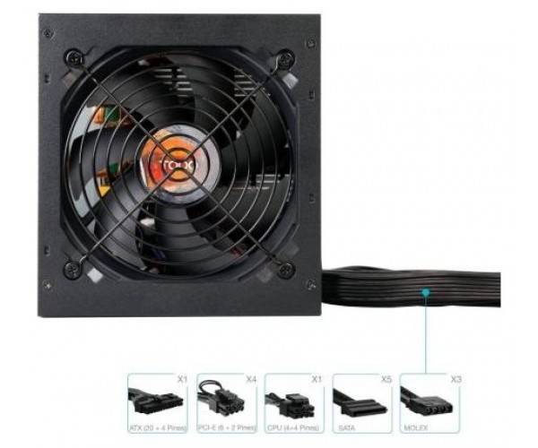 - Conectores: 1 conector ATX (24 pines) - longitud exterior 550 mm, 1 conector CPU (P8 4+4 pines) - longitud exterior 600 mm, 4 conector PCI-E (P8 6+2 pines) - longitud exterior 550+150 mm, 5 conectores SATA y 3 MOLEX - longitud exterior 550+150+150+150 mm