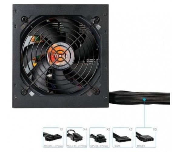 - Conectores: 1 conector ATX (24 pines) - longitud exterior 550 mm, 2 conector CPU (P8 4+4 pines) - longitud exterior 600 mm, 4 conector PCI-E (P8 6+2 pines) - longitud exterior 550+150 mm, 5 conectores SATA y 3 MOLEX - longitud exterior 550+150+150+150 mm